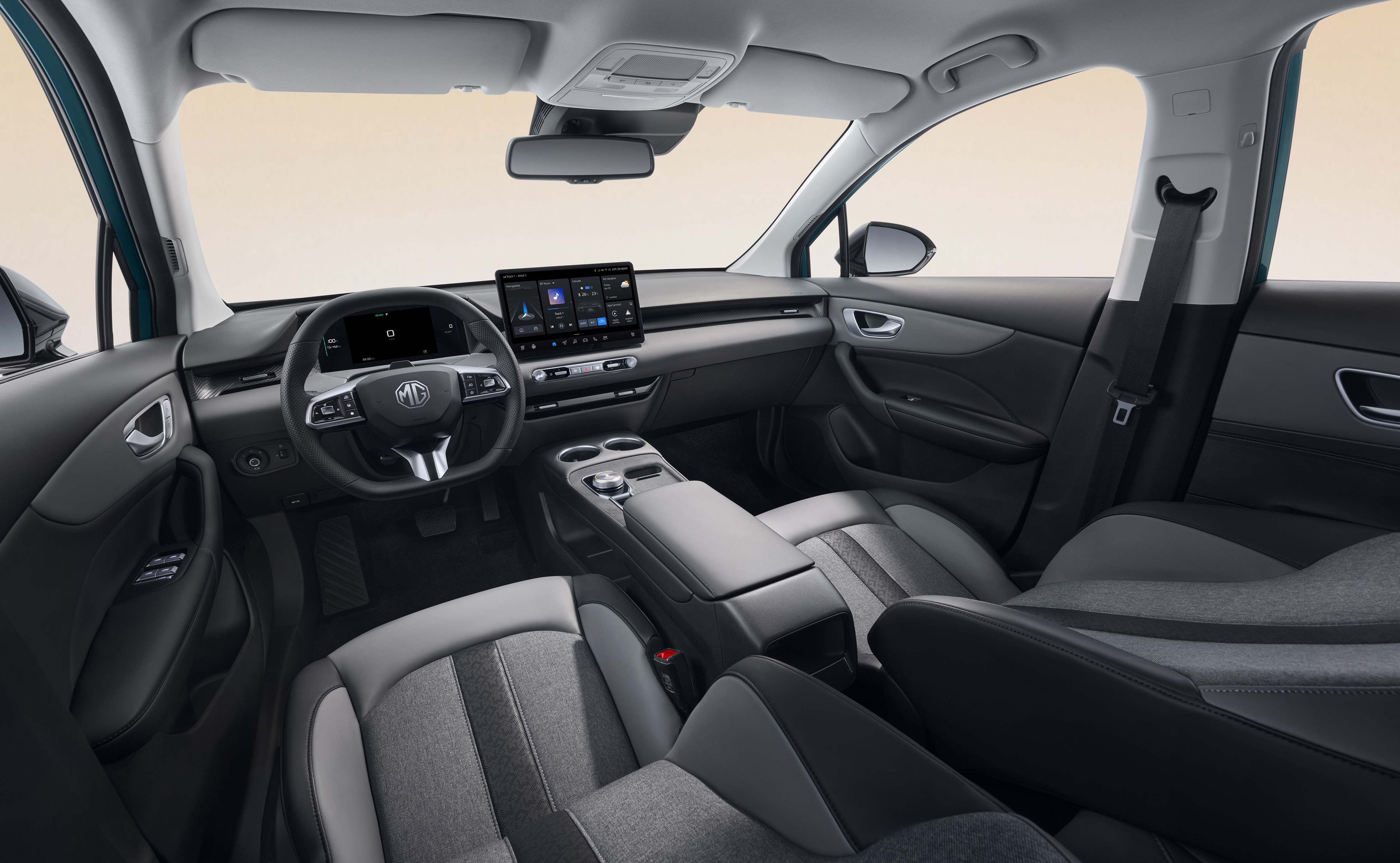 Dès son premier niveau de finition, la nouvelle MG4 EV se démarque comme le modèle le mieux équipé de sa catégorie confirmant sa place de référence en rapport prix/prestation sur le segment. De série la nouvelle MG4 EV intègre un écran d’info-divertissement flottant de 12,8 pouces complété par un compteur numérique personnalisable de 7 pouces. Ces nouveaux écrans seront accompagnés d’applications connectées telles que TikTok et YouTube et pourront afficher le contenu des applications mobiles avec Apple Carplay et Android Auto désormais sans fil. Un chargeur sans fil de 15 W est également disponible sur la console centrale.