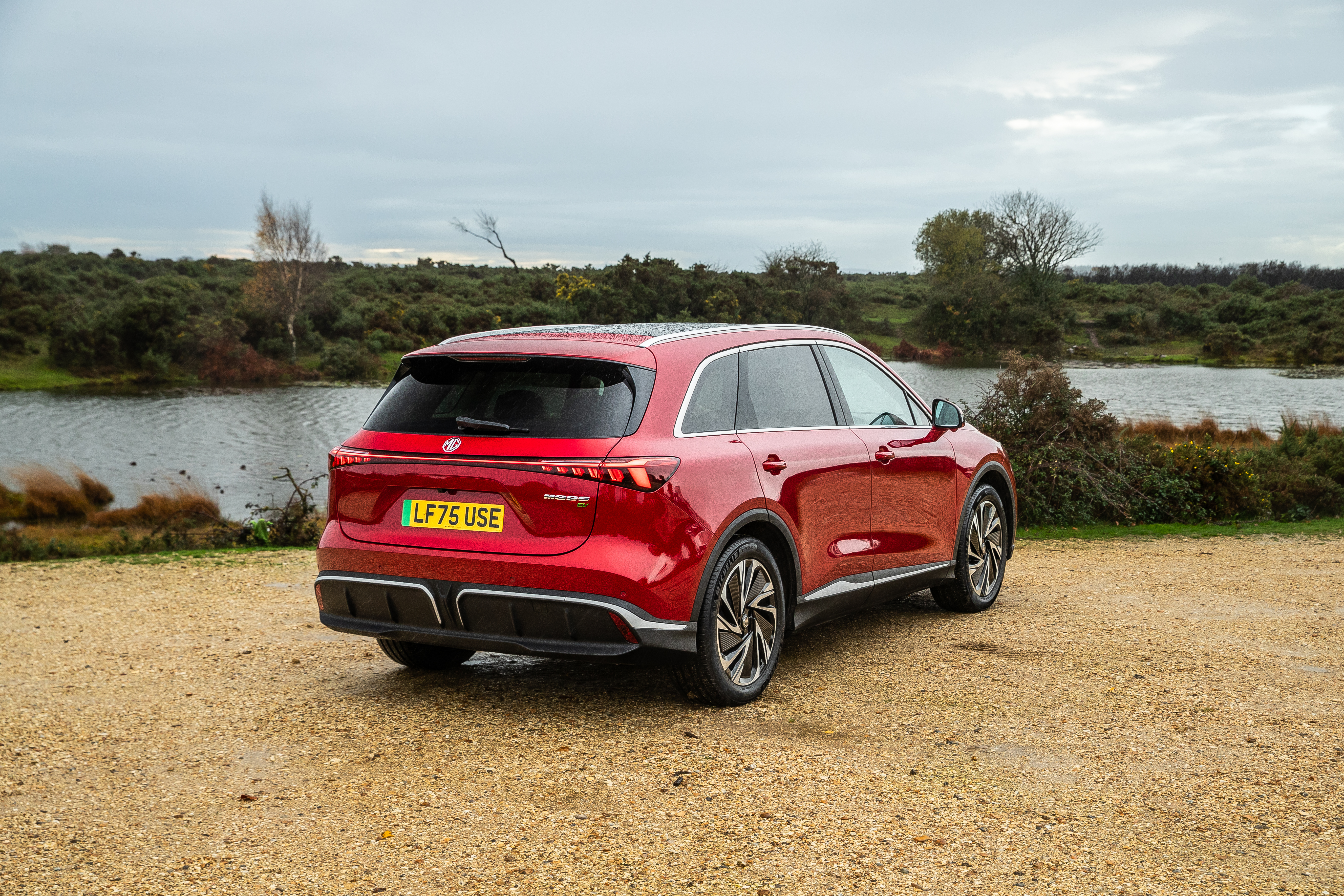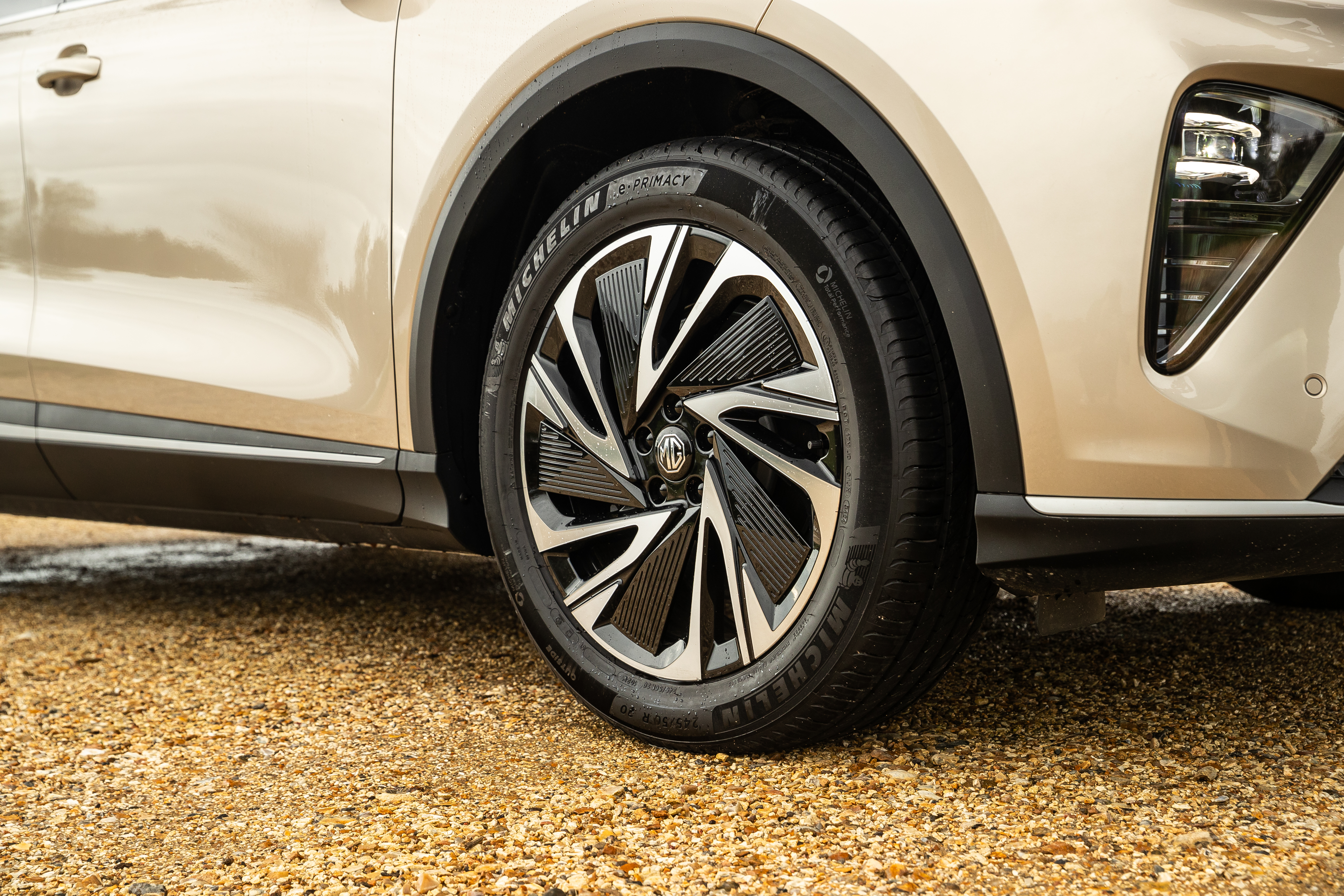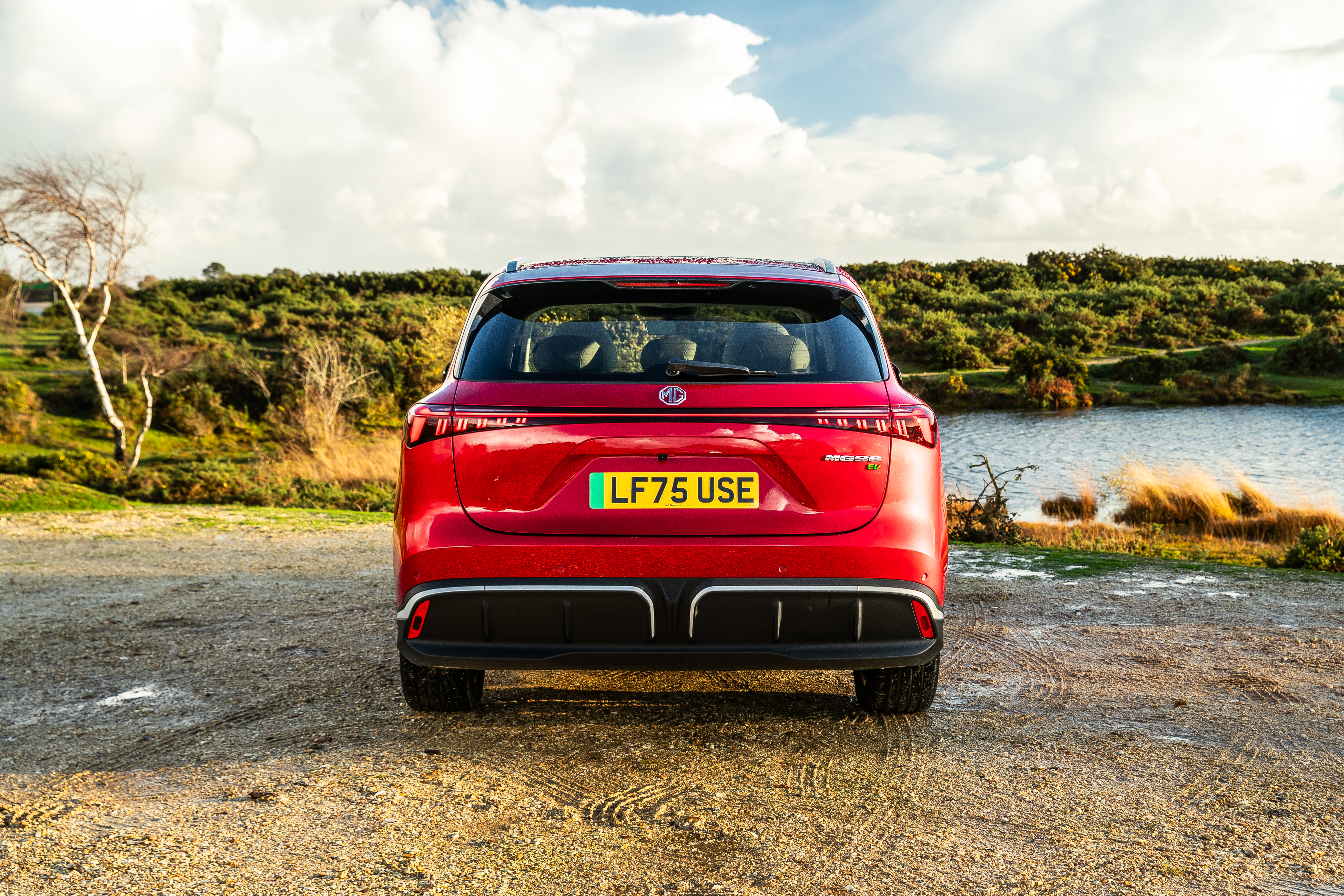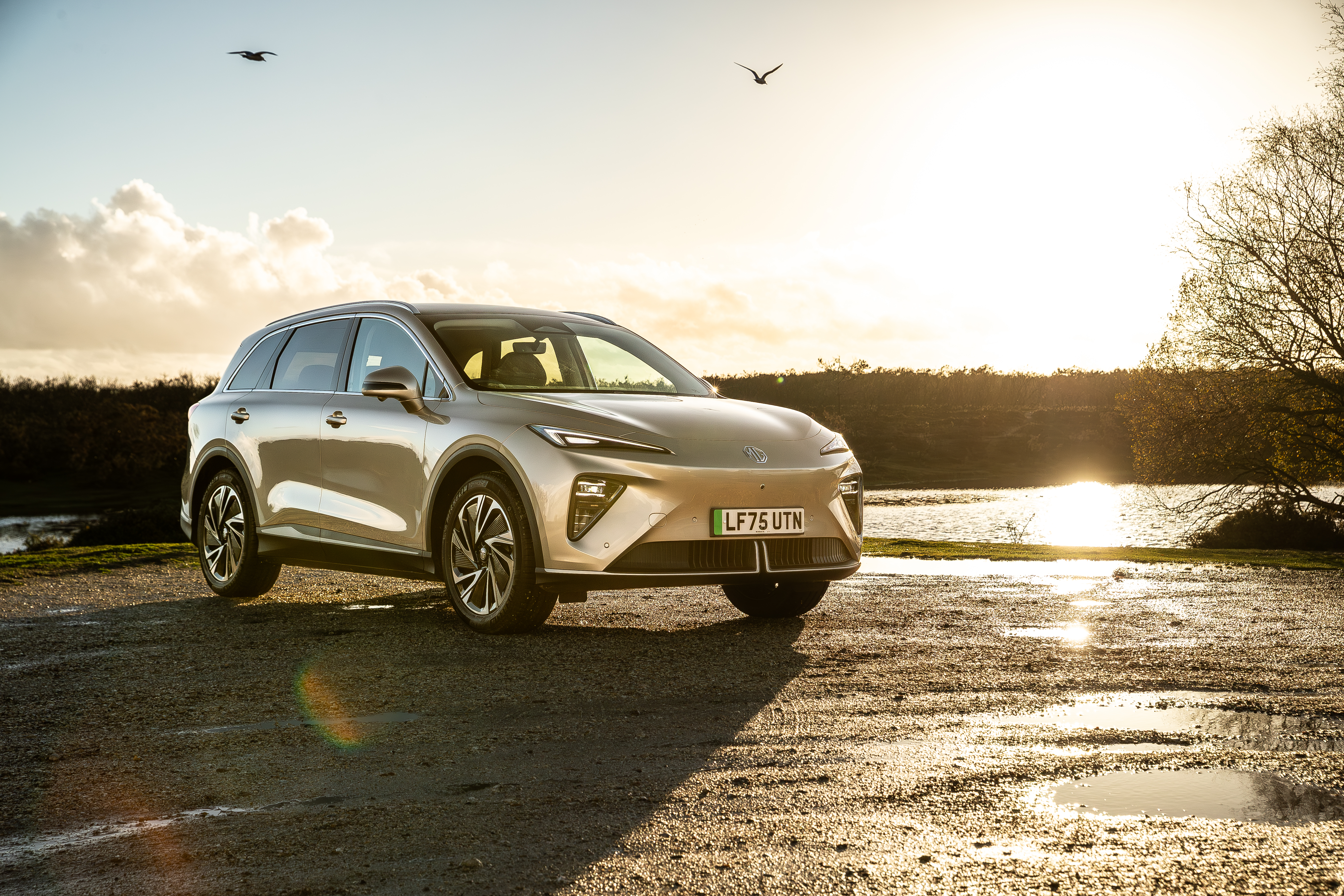 De MGS6 EV heeft een moderne, technische look die perfect aansluit bij de andere elektrische modellen van het merk. Het design van de voorzijde wordt gekenmerkt door een gesplitste grille, geïnspireerd op de MG Cyberster roadster, met geïntegreerde groot- en dimlichten en onderscheidende dagrijverlichting. Centraal op de neus prijkt het iconische achthoekige MG-logo, uitgevoerd in een gepolijste zilverkleur. Van opzij vallen de zilverkleurige dakrails, het privacyglas, de krachtige schouderlijn en de markante 20-inch Gulfstream-velgen direct op. Eyecatcher op de achterzijde is het stijlvolle LED-lichtarmatuur over de volledige breedte, die niet alleen het design versterkt, maar ook op slimme wijze is geoptimaliseerd om het elektrische rijbereik te vergroten.